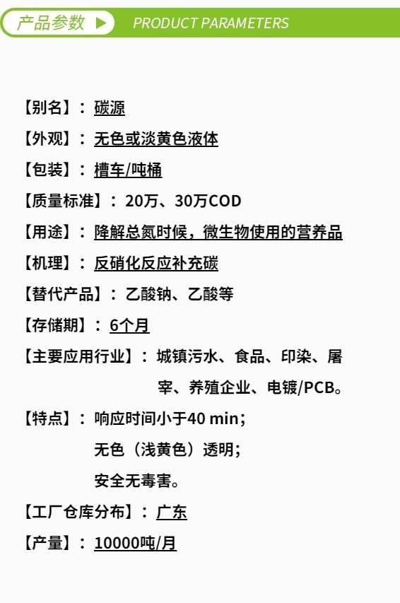 1.生物利用率高,促進(jìn)反硝化脫氮異養(yǎng)菌群的快速繁殖;